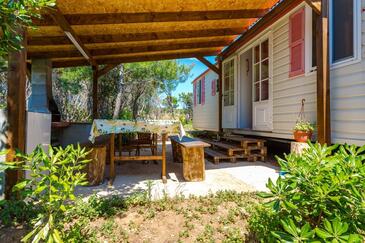 Ferienwohnung bietet Platz für 4 Gäste. Die Betten sind in Schlafzimmern, die es 2 gibt, innerhalb einer Gesamtfläche von 16m2, angeordnet. Die Gäste haben eine eigene Terrasse zur Verfügung, auf der sie in warmen Sommernächten genießen können. Für vollen Genuss und Entspannung gibt es einen privaten Grill für Gäste dieser Unterkunft.