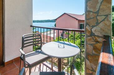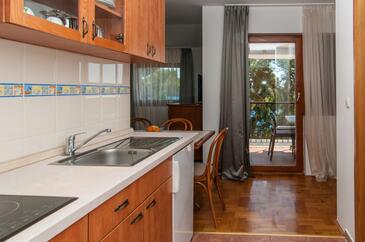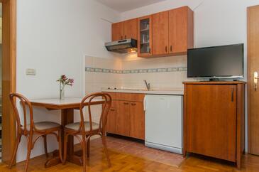 Ferienwohnung bietet Platz für 3 Gäste. Die Betten sind in Schlafzimmern, die es 1 gibt, und in Wohnzimmer, innerhalb einer Gesamtfläche von 34m2, angeordnet. Die Gäste haben eine eigene Terrasse zur Verfügung, auf der sie in warmen Sommernächten genießen können. Das Apartment bietet Meerblick. Es ist erlaubt, Speisen auf dem Gemeinschafts-Grill vorzubereiten.
