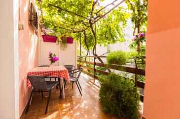 Ferienwohnung bietet Platz für 5 Gäste. Die Betten sind in Schlafzimmern, die es 2 gibt, und in Esszimmer, innerhalb einer Gesamtfläche von 49m2, angeordnet. Die Gäste haben eine eigene Terrasse zur Verfügung, auf der sie in warmen Sommernächten genießen können. Es ist erlaubt, Speisen auf dem Gemeinschafts-Grill vorzubereiten.