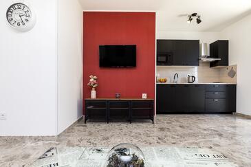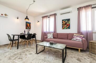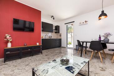 Ferienwohnung bietet Platz für 3 Gäste. Die Betten sind in Schlafzimmern, die es 1 gibt, und in Wohnzimmer, innerhalb einer Gesamtfläche von 54m2, angeordnet. Die Gäste haben eine eigene Terrasse zur Verfügung, auf der sie in warmen Sommernächten genießen können. Das Apartment bietet Meerblick. In der Unterkunftseinheit besteht die Möglichkeit des Mitbringens von Haustieren gegen Aufpreis.
