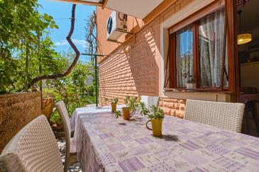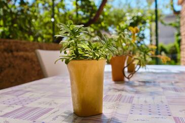 Ferienwohnung bietet Platz für 4 Gäste. Die Betten sind in Schlafzimmern, die es 2 gibt, innerhalb einer Gesamtfläche von 70m2, angeordnet. Die Gäste haben eine eigene Terrasse zur Verfügung, auf der sie in warmen Sommernächten genießen können. Es ist erlaubt, Speisen auf dem Gemeinschafts-Grill vorzubereiten.