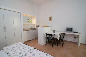 Ferienwohnung bietet Platz für 4 Gäste. Die Betten sind in Schlafzimmern, die es 1 gibt, und in Wohnzimmer, innerhalb einer Gesamtfläche von 38m2, angeordnet. In der Unterkunftseinheit besteht die Möglichkeit des Mitbringens von Haustieren gegen Aufpreis. Die reservierte Unterkunftseinheit hat keinen Balkon und keine Terrasse.