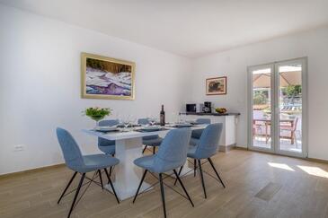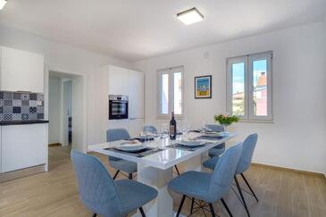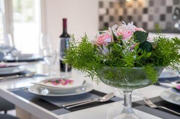Ferienwohnung bietet Platz für 6 Gäste. Die Betten sind in Schlafzimmern, die es 3 gibt, innerhalb einer Gesamtfläche von 103m2, angeordnet. Die Gäste haben eine eigene Terrasse zur Verfügung, auf der sie in warmen Sommernächten genießen können. Für vollen Genuss und Entspannung gibt es einen privaten Grill für Gäste dieser Unterkunft.