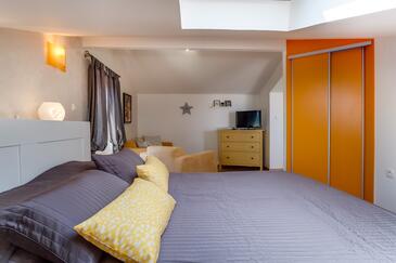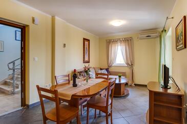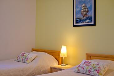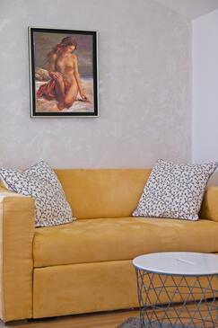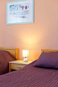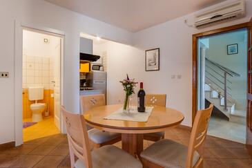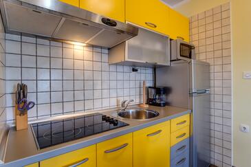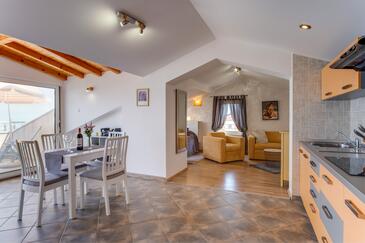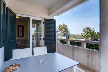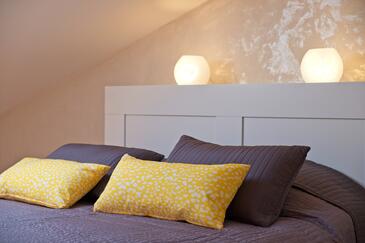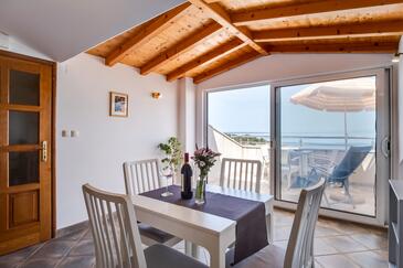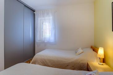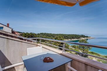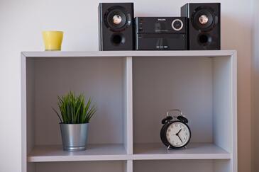 Ferienwohnung bietet Platz für 5 Gäste. Die Betten sind in Schlafzimmern, die es 2 gibt, und in Wohnzimmer, innerhalb einer Gesamtfläche von 47m2, angeordnet. Die Gäste haben eine eigene Terrasse zur Verfügung, auf der sie in warmen Sommernächten genießen können. Das Apartment bietet Meerblick. Es ist erlaubt, Speisen auf dem Gemeinschafts-Grill vorzubereiten.