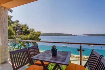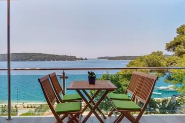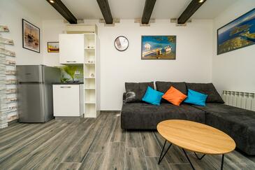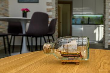 Ferienwohnung bietet Platz für 4 Gäste. Die Betten sind in Schlafzimmern, die es 2 gibt, innerhalb einer Gesamtfläche von 39m2, angeordnet. Die Gäste haben eine eigene Terrasse zur Verfügung, auf der sie in warmen Sommernächten genießen können. Das Apartment bietet Meerblick. Es ist erlaubt, Speisen auf dem Gemeinschafts-Grill vorzubereiten. In der Unterkunftseinheit besteht die Möglichkeit des Mitbringens von Haustieren gegen Aufpreis. Durch die Terrasse der gebuchten Unterkunftseinheit gehen auch andere Gäste oder Vermieter. In der gebuchten Unterkunftseinheit zahlt man am Ort ein Depositum ( der Preis ist an der Internetseite angeführt ).