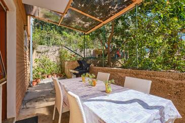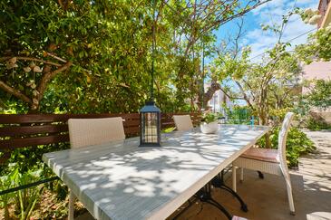 Ferienwohnung bietet Platz für 4 Gäste. Die Betten sind in Schlafzimmern, die es 2 gibt, innerhalb einer Gesamtfläche von 71m2, angeordnet. Die Gäste haben eine eigene Terrasse zur Verfügung, auf der sie in warmen Sommernächten genießen können. Es ist erlaubt, Speisen auf dem Gemeinschafts-Grill vorzubereiten.