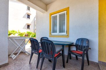 Ferienwohnung bietet Platz für 2 Gäste. Die Betten sind in Schlafzimmern, die es 1 gibt, innerhalb einer Gesamtfläche von 38m2, angeordnet. Die Gäste haben eine eigene Terrasse zur Verfügung, auf der sie in warmen Sommernächten genießen können. Das Apartment bietet Meerblick. Es ist erlaubt, Speisen auf dem Gemeinschafts-Grill vorzubereiten.