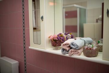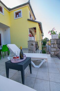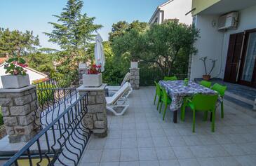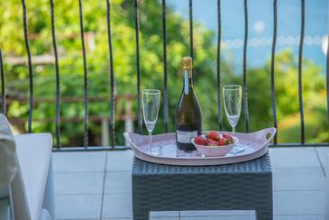 Ferienwohnung bietet Platz für 5 Gäste. Die Betten sind in Schlafzimmern, die es 2 gibt, und in Wohnzimmer, innerhalb einer Gesamtfläche von 79m2, angeordnet. Die Gäste haben eine eigene Terrasse zur Verfügung, auf der sie in warmen Sommernächten genießen können. Das Apartment bietet Meerblick. Es ist erlaubt, Speisen auf dem Gemeinschafts-Grill vorzubereiten. In der Unterkunftseinheit besteht die Möglichkeit des Mitbringens von Haustieren gegen Aufpreis.
