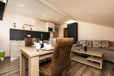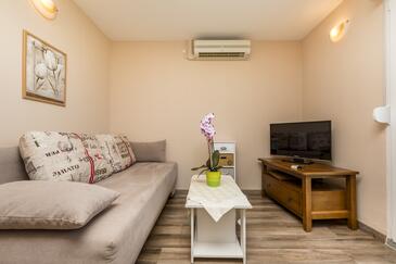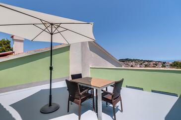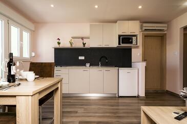 Studio bietet Platz für 2 Gäste. Die Betten sind in Schlafzimmern, die es 1 gibt, innerhalb einer Gesamtfläche von 44m2, angeordnet. Die Gäste haben eine eigene Terrasse zur Verfügung, auf der sie in warmen Sommernächten genießen können. Das Studio-Apartment bietet Meerblick.