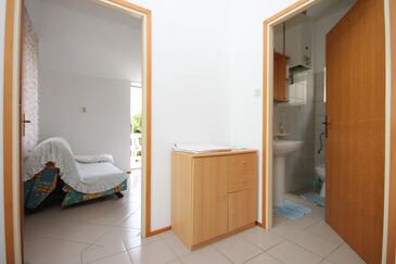 Ferienwohnung bietet Platz für 2 Gäste. Die Betten sind in Schlafzimmern, die es 1 gibt, innerhalb einer Gesamtfläche von 28m2, angeordnet. Die Gäste haben eine eigene Terrasse zur Verfügung, auf der sie in warmen Sommernächten genießen können. Das Apartment bietet Meerblick. Es ist erlaubt, Speisen auf dem Gemeinschafts-Grill vorzubereiten.