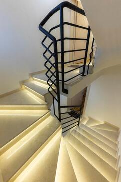 Ferienwohnung bietet Platz für 5 Gäste. Die Betten sind in Schlafzimmern, die es 2 gibt, und in Wohnzimmer, innerhalb einer Gesamtfläche von 68m2, angeordnet. Die Gäste haben eine eigene Terrasse zur Verfügung, auf der sie in warmen Sommernächten genießen können. Das Apartment bietet Meerblick. Es ist erlaubt, Speisen auf dem Gemeinschafts-Grill vorzubereiten.