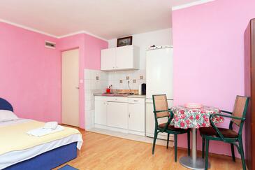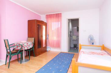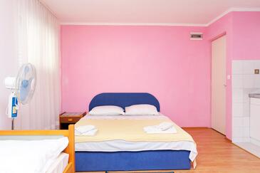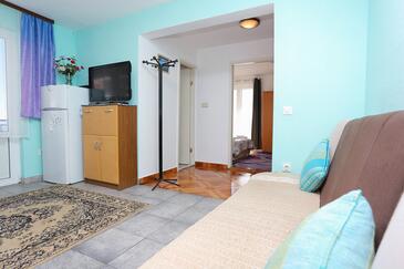 Ferienwohnung bietet Platz für 5 Gäste. Die Betten sind in Schlafzimmern, die es 1 gibt, und in Wohnzimmer, innerhalb einer Gesamtfläche von 37m2, angeordnet. Die Gäste haben einen eigenen Balkon zur Verfügung, auf der sie in warmen Sommernächten genießen können. Das Apartment bietet Meerblick. Es ist erlaubt, Speisen auf dem Gemeinschafts-Grill vorzubereiten.