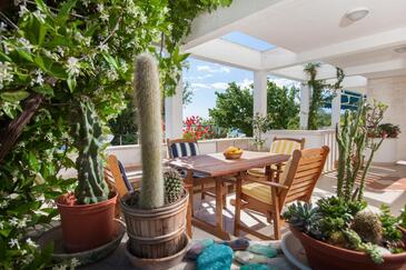 Haus bietet Platz für 8 Gäste. Die Betten sind in Schlafzimmern, die es 4 gibt, innerhalb einer Gesamtfläche von 150m2, angeordnet. Die Gäste haben eine eigene Terrasse zur Verfügung, auf der sie in warmen Sommernächten genießen können. Das Haus bietet Meerblick. Für vollen Genuss und Entspannung gibt es einen privaten Grill für Gäste dieser Unterkunft. Während ihres Aufenthalts können sich Gäste im privaten Schwimmbad entspannen.