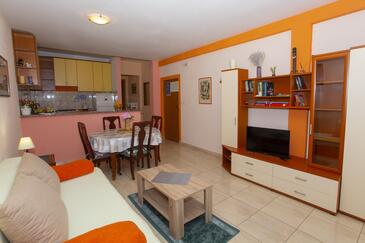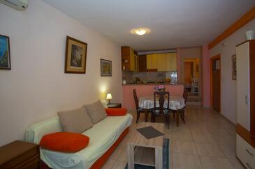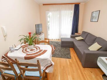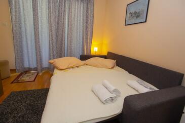 Ferienwohnung bietet Platz für 4 Gäste. Die Betten sind in Schlafzimmern, die es 1 gibt, und in Wohnzimmer, innerhalb einer Gesamtfläche von 40m2, angeordnet. Die Gäste haben eine eigene Terrasse zur Verfügung, auf der sie in warmen Sommernächten genießen können. Es ist erlaubt, Speisen auf dem Gemeinschafts-Grill vorzubereiten.