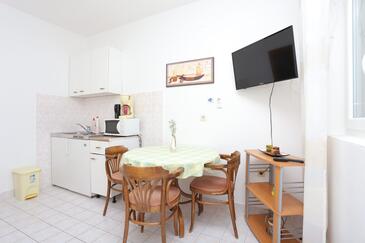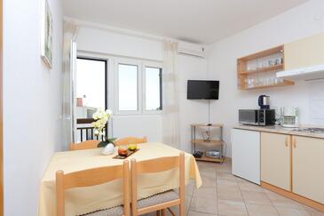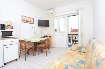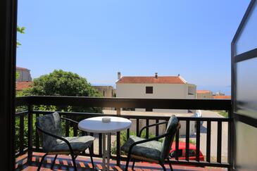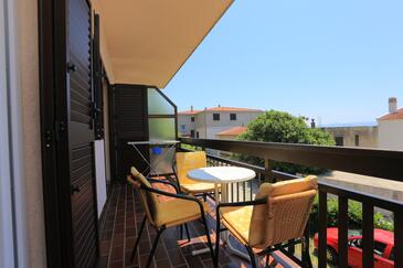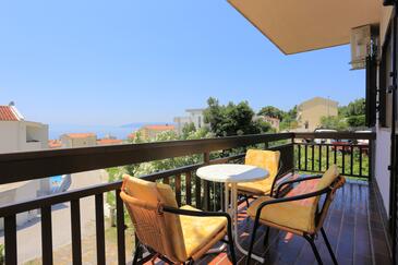 Ferienwohnung bietet Platz für 4 Gäste. Die Betten sind in Schlafzimmern, die es 2 gibt, innerhalb einer Gesamtfläche von 44m2, angeordnet. Die Gäste haben einen eigenen Balkon zur Verfügung, auf der sie in warmen Sommernächten genießen können. Das Apartment bietet Meerblick. Es ist erlaubt, Speisen auf dem Gemeinschafts-Grill vorzubereiten.