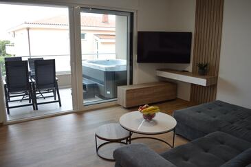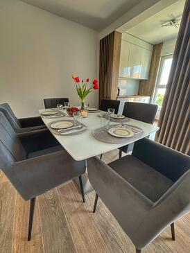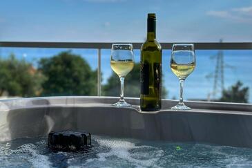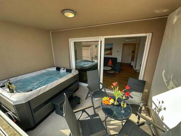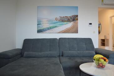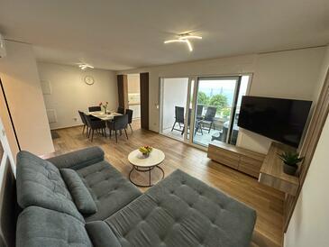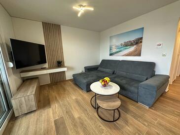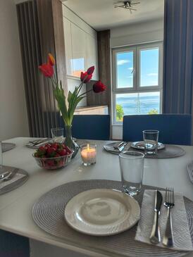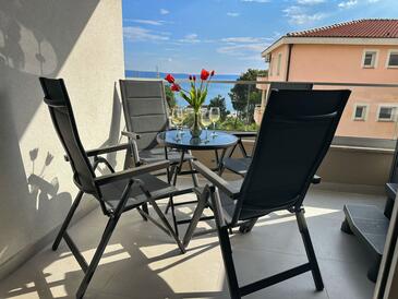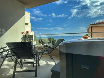 Ferienwohnung bietet Platz für 6 Gäste. Die Betten sind in Schlafzimmern, die es 2 gibt, und in Wohnzimmer, innerhalb einer Gesamtfläche von 57m2, angeordnet. Die Gäste können den Meerblick von eigener Terrasse genießen.