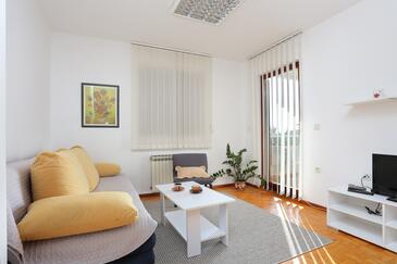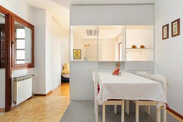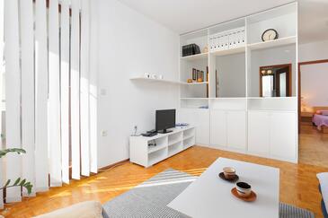 Ferienwohnung bietet Platz für 5 Gäste. Die Betten sind in Schlafzimmern, die es 2 gibt, und in Wohnzimmer, innerhalb einer Gesamtfläche von 55m2, angeordnet. Die Gäste haben eine eigene Terrasse zur Verfügung, auf der sie in warmen Sommernächten genießen können.