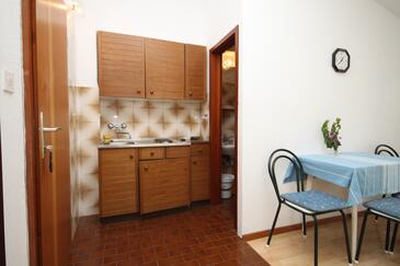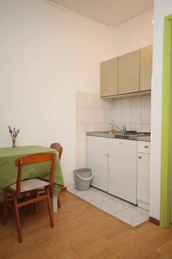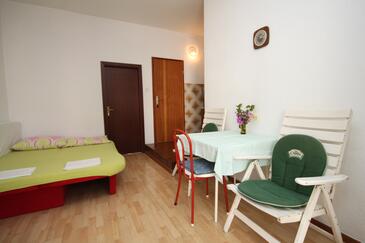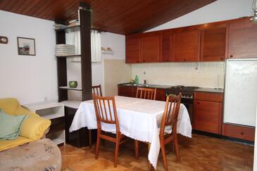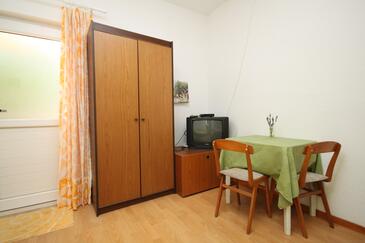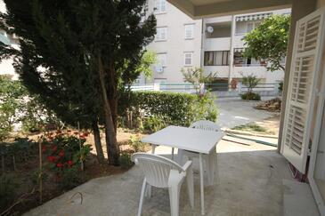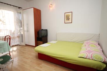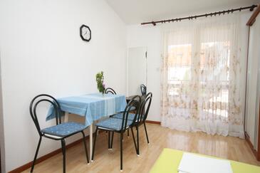 Ferienwohnung bietet Platz für 5 Gäste. Die Betten sind in Schlafzimmern, die es 2 gibt, und in Wohnzimmer, innerhalb einer Gesamtfläche von 59m2, angeordnet. Die Gäste haben eine eigene Terrasse zur Verfügung, auf der sie in warmen Sommernächten genießen können. Das Apartment bietet Meerblick. Es ist erlaubt, Speisen auf dem Gemeinschafts-Grill vorzubereiten.