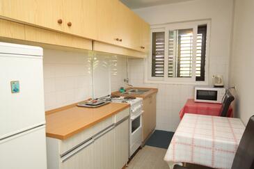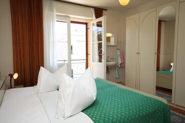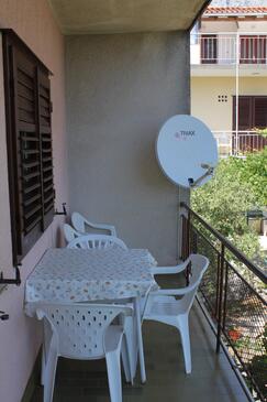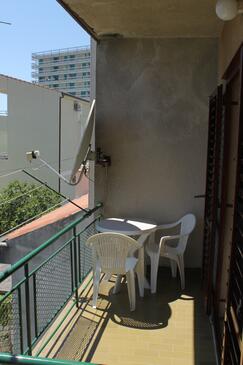 Ferienwohnung bietet Platz für 5 Gäste. Die Betten sind in Schlafzimmern, die es 3 gibt, innerhalb einer Gesamtfläche von 76m2, angeordnet. Die Gäste haben einen eigenen Balkon zur Verfügung, auf der sie in warmen Sommernächten genießen können. Es ist erlaubt, Speisen auf dem Gemeinschafts-Grill vorzubereiten.