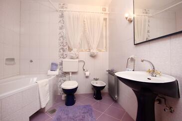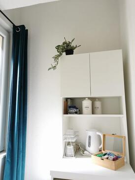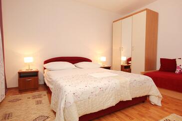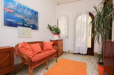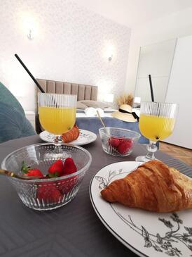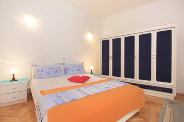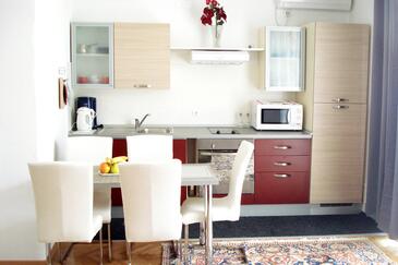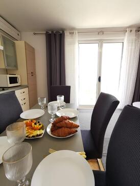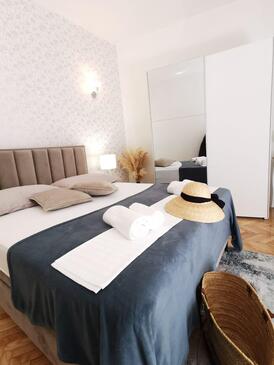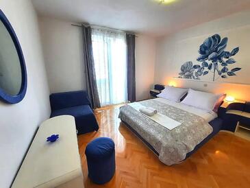 Ferienwohnung bietet Platz für 6 Gäste. Die Betten sind in Schlafzimmern, die es 3 gibt, innerhalb einer Gesamtfläche von 110m2, angeordnet. Die Gäste haben einen eigenen Balkon zur Verfügung, auf der sie in warmen Sommernächten genießen können. Das Apartment bietet Meerblick.