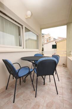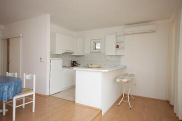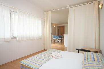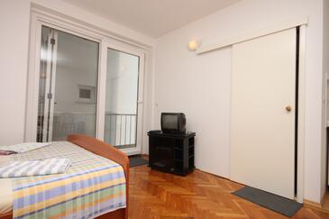 Ferienwohnung bietet Platz für 4 Gäste. Die Betten sind in Schlafzimmern, die es 1 gibt, und in Wohnzimmer, innerhalb einer Gesamtfläche von 63m2, angeordnet. Die Gäste haben eine eigene Terrasse zur Verfügung, auf der sie in warmen Sommernächten genießen können. Das Apartment bietet Meerblick. Es ist erlaubt, Speisen auf dem Gemeinschafts-Grill vorzubereiten.