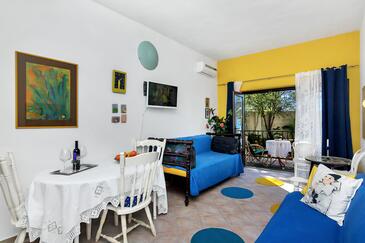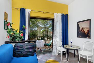 Ferienwohnung bietet Platz für 4 Gäste. Die Betten sind in Schlafzimmern, die es 1 gibt, und in Wohnzimmer, innerhalb einer Gesamtfläche von 39m2, angeordnet. Die Gäste haben eine eigene Terrasse zur Verfügung, auf der sie in warmen Sommernächten genießen können.