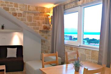 Ferienwohnung bietet Platz für 5 Gäste. Die Betten sind in Schlafzimmern, die es 1 gibt, und in Wohnzimmer, innerhalb einer Gesamtfläche von 41m2, angeordnet. Das Apartment bietet Meerblick. Die reservierte Unterkunftseinheit verfügt über einen gemeinsame Terrasse.
