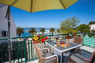 Ferienwohnung bietet Platz für 4 Gäste. Die Betten sind in Schlafzimmern, die es 2 gibt, innerhalb einer Gesamtfläche von 55m2, angeordnet. Die Gäste haben eine eigene Terrasse zur Verfügung, auf der sie in warmen Sommernächten genießen können. Das Apartment bietet Meerblick.