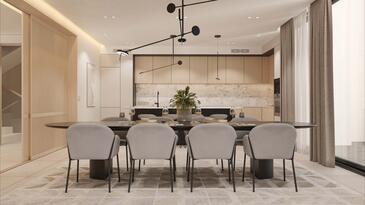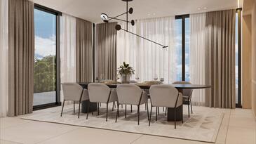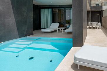Haus bietet Platz für 8 Gäste. Die Betten sind in Schlafzimmern, die es 4 gibt, innerhalb einer Gesamtfläche von 211m2, angeordnet. Die Gäste haben eine eigene Terrasse zur Verfügung, auf der sie in warmen Sommernächten genießen können. Das Haus bietet Meerblick. Für vollen Genuss und Entspannung gibt es einen privaten Grill für Gäste dieser Unterkunft. Während ihres Aufenthalts können sich Gäste im privaten Schwimmbad entspannen. In der Unterkunftseinheit besteht die Möglichkeit des Mitbringens von Haustieren gegen Aufpreis.
