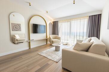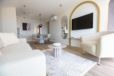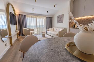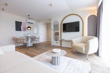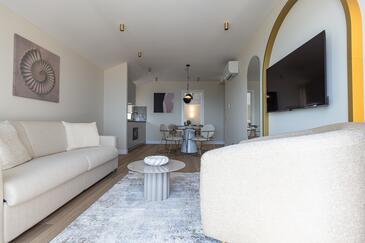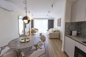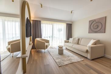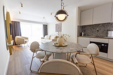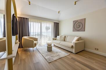 Ferienwohnung bietet Platz für 3 Gäste. Die Betten sind in Schlafzimmern, die es 1 gibt, und in Wohnzimmer, innerhalb einer Gesamtfläche von 42m2, angeordnet. Die Gäste haben eine eigene Terrasse zur Verfügung, auf der sie in warmen Sommernächten genießen können. Während ihres Aufenthalts können Gäste das gemeinsam zur Nutzung stehende Schwimmbad benutzen. Durch die Terrasse der gebuchten Unterkunftseinheit gehen auch andere Gäste oder Vermieter.