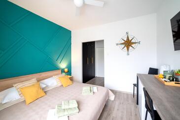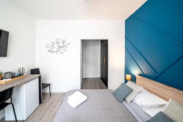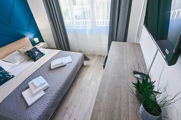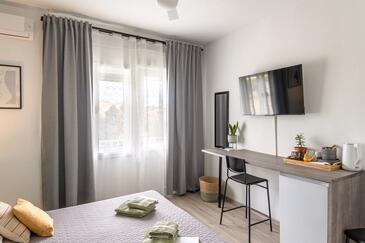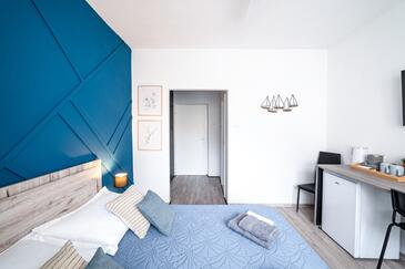 Zimmer bietet Platz für 2 Gäste. Die Betten sind in Schlafzimmern, die es 1 gibt, innerhalb einer Gesamtfläche von 20m2, angeordnet. Die Gäste haben einen eigenen Balkon zur Verfügung, auf der sie in warmen Sommernächten genießen können. Die reservierte Unterkunftseinheit ist ein Zimmer mit eigenem Badezimmer ohne die Möglichkeit der Nutzung einer Küche.