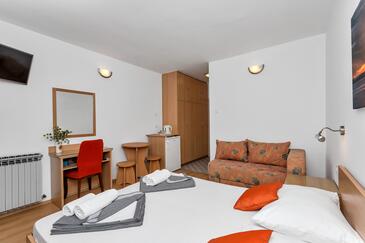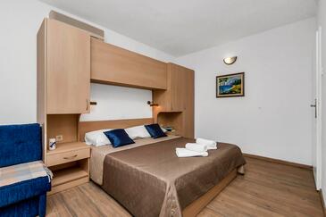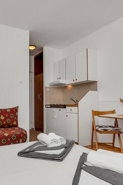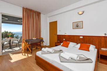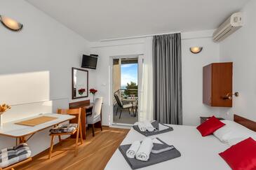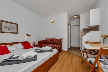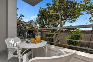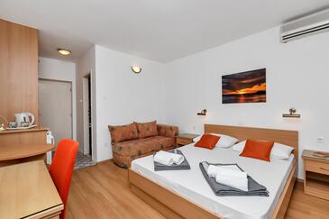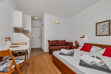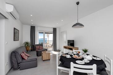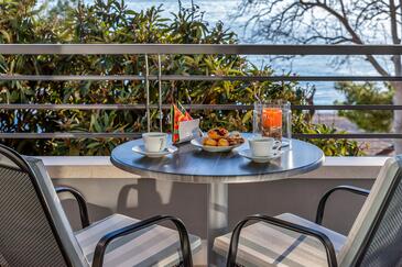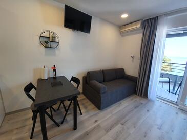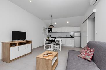 Ferienwohnung bietet Platz für 4 Gäste. Die Betten sind in Schlafzimmern, die es 1 gibt, und in Wohnzimmer, innerhalb einer Gesamtfläche von 70m2, angeordnet. Die Gäste haben eine eigene Terrasse zur Verfügung, auf der sie in warmen Sommernächten genießen können. Das Apartment bietet Meerblick. Es ist erlaubt, Speisen auf dem Gemeinschafts-Grill vorzubereiten.