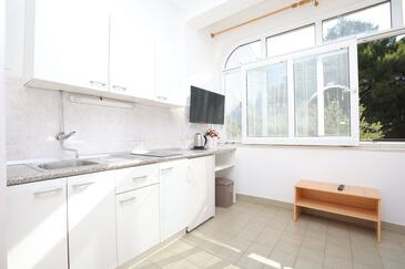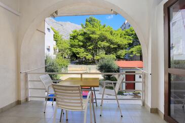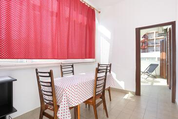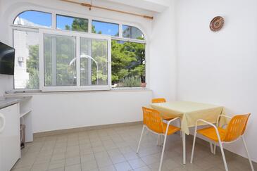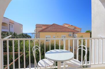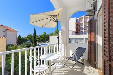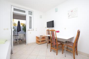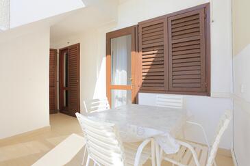 Ferienwohnung bietet Platz für 7 Gäste. Die Betten sind in Schlafzimmern, die es 2 gibt, und in Wohnzimmer, innerhalb einer Gesamtfläche von 51m2, angeordnet. Die Gäste haben eine eigene Terrasse zur Verfügung, auf der sie in warmen Sommernächten genießen können. Es ist erlaubt, Speisen auf dem Gemeinschafts-Grill vorzubereiten.