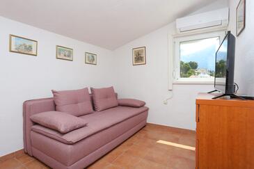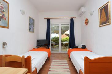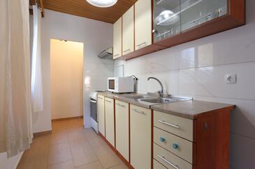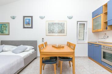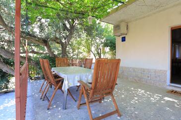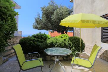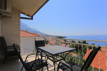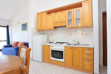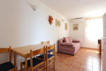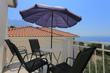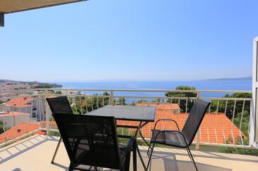 Ferienwohnung bietet Platz für 6 Gäste. Die Betten sind in Schlafzimmern, die es 2 gibt, innerhalb einer Gesamtfläche von 57m2, angeordnet. Die Gäste haben eine eigene Terrasse zur Verfügung, auf der sie in warmen Sommernächten genießen können. Das Apartment bietet Meerblick. Es ist erlaubt, Speisen auf dem Gemeinschafts-Grill vorzubereiten.