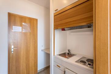 Ferienwohnung bietet Platz für 4 Gäste. Die Betten sind in Schlafzimmern, die es 1 gibt, und in Wohnzimmer, innerhalb einer Gesamtfläche von 31m2, angeordnet. Die Gäste haben eine eigene Terrasse zur Verfügung, auf der sie in warmen Sommernächten genießen können. Das Apartment bietet Meerblick. Es ist erlaubt, Speisen auf dem Gemeinschafts-Grill vorzubereiten. In der Unterkunftseinheit besteht die Möglichkeit des Mitbringens von Haustieren gegen Aufpreis.