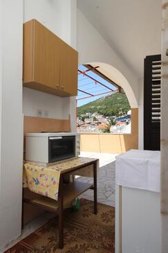 Ferienwohnung bietet Platz für 6 Gäste. Die Betten sind in Schlafzimmern, die es 1 gibt, und in Wohnzimmer, innerhalb einer Gesamtfläche von 44m2, angeordnet. Die Gäste haben eine eigene Terrasse zur Verfügung, auf der sie in warmen Sommernächten genießen können. Es ist erlaubt, Speisen auf dem Gemeinschafts-Grill vorzubereiten. In der Unterkunftseinheit besteht die Möglichkeit des Mitbringens von Haustieren gegen Aufpreis.