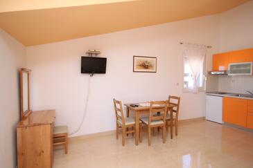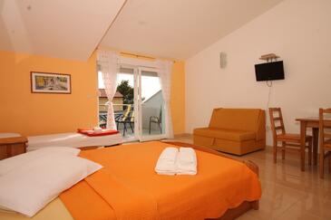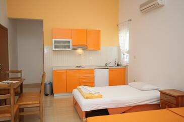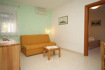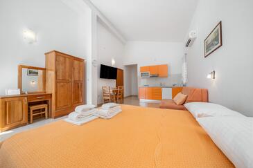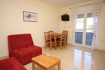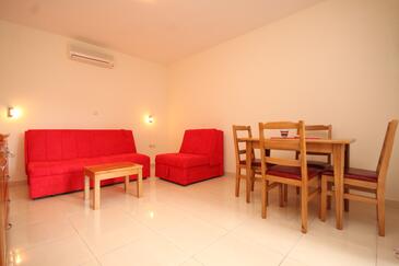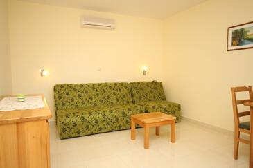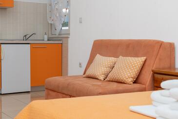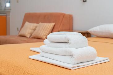 Ferienwohnung bietet Platz für 4 Gäste. Die Betten sind in Schlafzimmern, die es 1 gibt, und in Wohnzimmer, innerhalb einer Gesamtfläche von 37m2, angeordnet. Die Gäste haben einen eigenen Balkon zur Verfügung, auf der sie in warmen Sommernächten genießen können. Das Apartment bietet Meerblick. Es ist erlaubt, Speisen auf dem Gemeinschafts-Grill vorzubereiten.