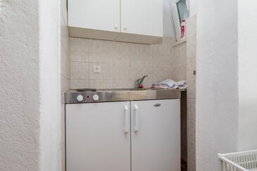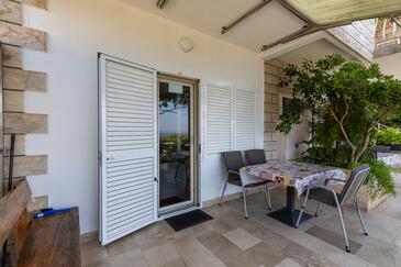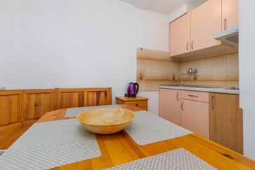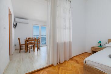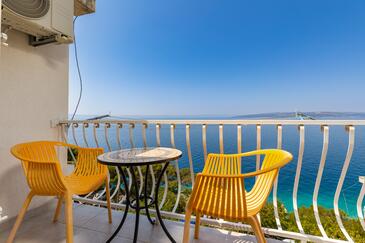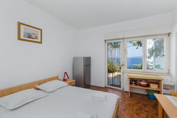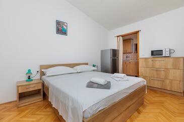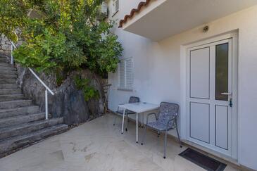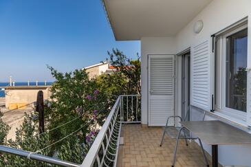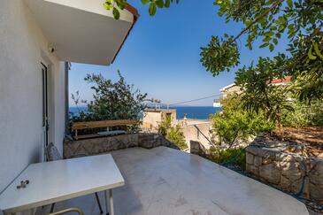 Ferienwohnung bietet Platz für 2 Gäste. Die Betten sind in Schlafzimmern, die es 1 gibt, innerhalb einer Gesamtfläche von 32m2, angeordnet. Die Gäste haben eine eigene Terrasse zur Verfügung, auf der sie in warmen Sommernächten genießen können. Das Apartment bietet Meerblick. Es ist erlaubt, Speisen auf dem Gemeinschafts-Grill vorzubereiten.