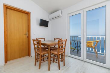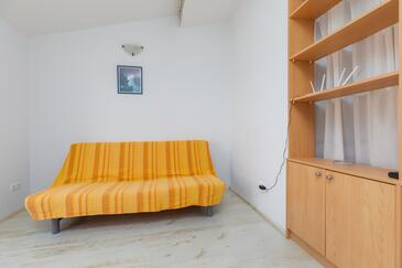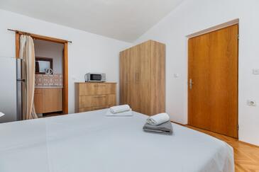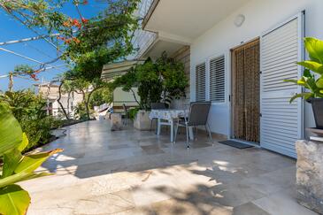 Ferienwohnung bietet Platz für 2 Gäste. Die Betten sind in Schlafzimmern, die es 1 gibt, innerhalb einer Gesamtfläche von 32m2, angeordnet. Die Gäste haben eine eigene Terrasse zur Verfügung, auf der sie in warmen Sommernächten genießen können. Das Apartment bietet Meerblick. Es ist erlaubt, Speisen auf dem Gemeinschafts-Grill vorzubereiten.