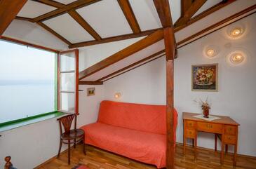 Ferienwohnung bietet Platz für 5 Gäste. Die Betten sind in Schlafzimmern, die es 2 gibt, innerhalb einer Gesamtfläche von 40m2, angeordnet. Die Gäste haben eine eigene Terrasse zur Verfügung, auf der sie in warmen Sommernächten genießen können. Das Apartment bietet Meerblick. Für vollen Genuss und Entspannung gibt es einen privaten Grill für Gäste dieser Unterkunft.