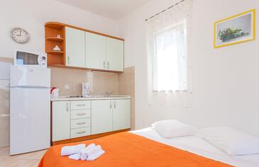 Ferienwohnung bietet Platz für 4 Gäste. Die Betten sind in Schlafzimmern, die es 1 gibt, und in Wohnzimmer, innerhalb einer Gesamtfläche von 41m2, angeordnet. Die Gäste haben eine eigene Terrasse zur Verfügung, auf der sie in warmen Sommernächten genießen können.