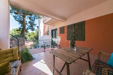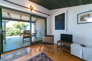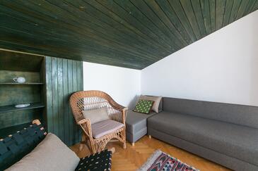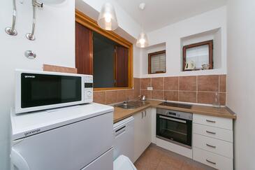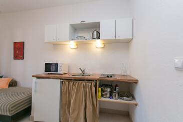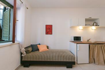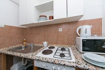 Ferienwohnung bietet Platz für 6 Gäste. Die Betten sind in Schlafzimmern, die es 2 gibt, und in Wohnzimmer, innerhalb einer Gesamtfläche von 64m2, angeordnet. Die Gäste haben einen eigenen Balkon zur Verfügung, auf der sie in warmen Sommernächten genießen können. Das Apartment bietet Meerblick. Es ist erlaubt, Speisen auf dem Gemeinschafts-Grill vorzubereiten.