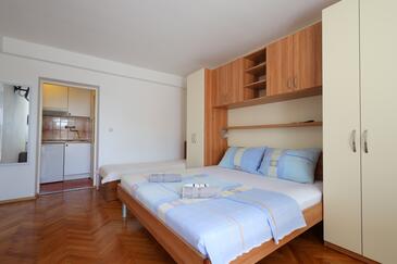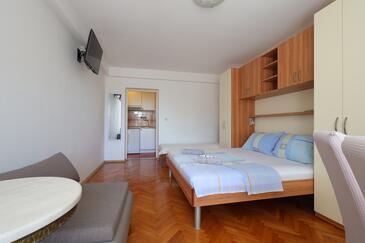 Ferienwohnung bietet Platz für 5 Gäste. Die Betten sind in Schlafzimmern, die es 1 gibt, und in Wohnzimmer, innerhalb einer Gesamtfläche von 39m2, angeordnet. Die Gäste haben einen eigenen Balkon zur Verfügung, auf der sie in warmen Sommernächten genießen können. Das Apartment bietet Meerblick. Die reservierte Unterkunftseinheit verfügt über einen gemeinsame Terrasse.