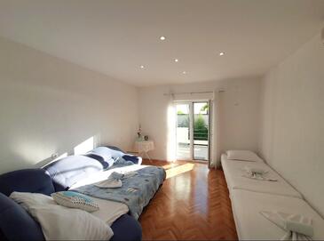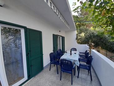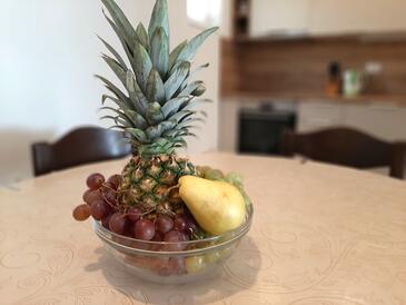 Ferienwohnung bietet Platz für 8 Gäste. Die Betten sind in Schlafzimmern, die es 2 gibt, und in Wohnzimmer, innerhalb einer Gesamtfläche von 87m2, angeordnet. Die Gäste haben eine eigene Terrasse zur Verfügung, auf der sie in warmen Sommernächten genießen können. Es ist erlaubt, Speisen auf dem Gemeinschafts-Grill vorzubereiten.