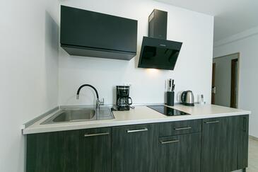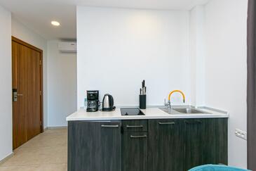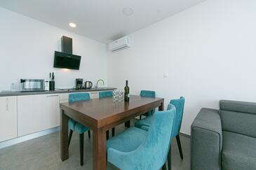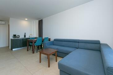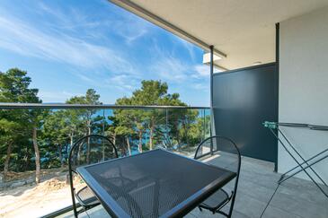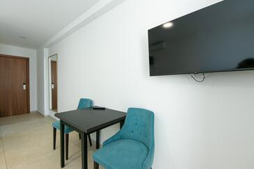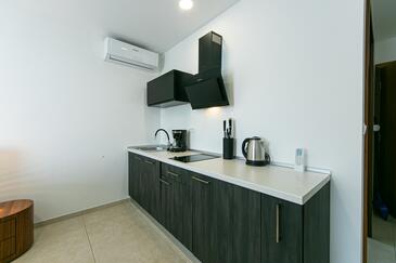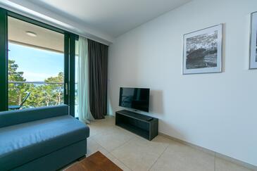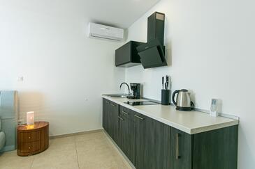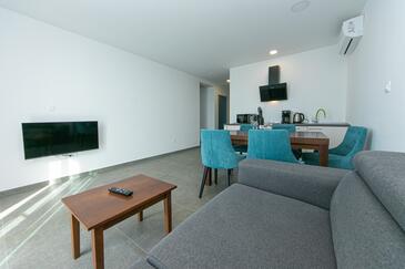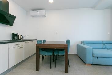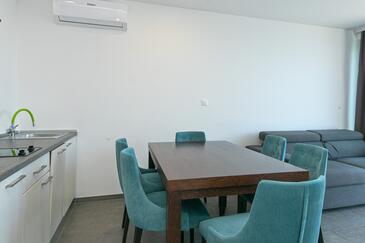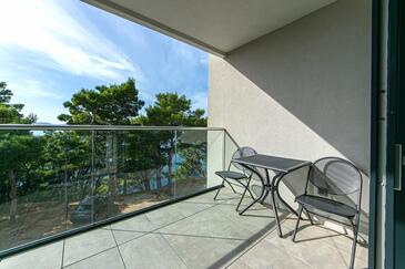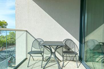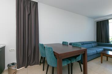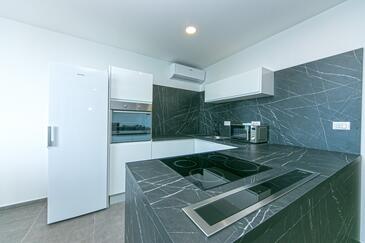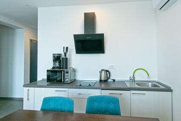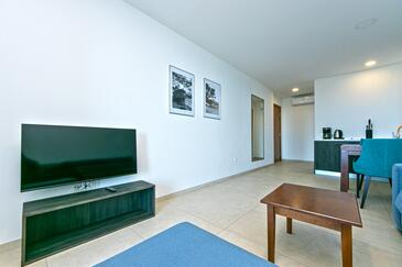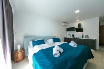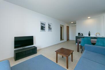 Ferienwohnung bietet Platz für 4 Gäste. Die Betten sind in Schlafzimmern, die es 2 gibt, innerhalb einer Gesamtfläche von 62m2, angeordnet. Die Gäste haben eine eigene Terrasse zur Verfügung, auf der sie in warmen Sommernächten genießen können. Das Apartment bietet Meerblick. Während ihres Aufenthalts können Gäste das gemeinsam zur Nutzung stehende Schwimmbad benutzen.