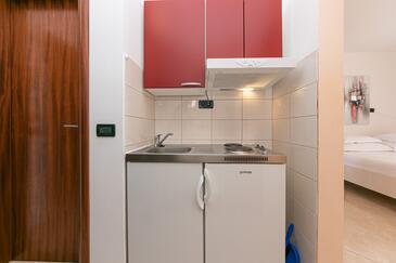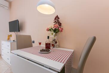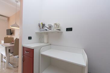 Ferienwohnung bietet Platz für 4 Gäste. Die Betten sind in Schlafzimmern, die es 2 gibt, innerhalb einer Gesamtfläche von 50m2, angeordnet. Die Gäste haben eine eigene Terrasse zur Verfügung, auf der sie in warmen Sommernächten genießen können. Das Apartment bietet Meerblick. Es ist erlaubt, Speisen auf dem Gemeinschafts-Grill vorzubereiten. Während ihres Aufenthalts können Gäste das gemeinsam zur Nutzung stehende Schwimmbad benutzen. In der Unterkunftseinheit besteht die Möglichkeit des Mitbringens von Haustieren gegen Aufpreis.