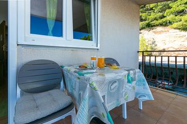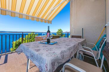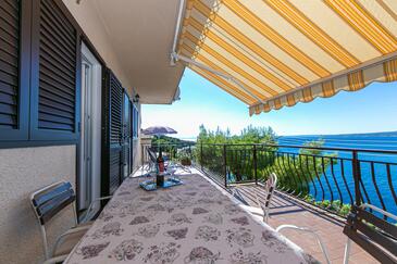 Ferienwohnung bietet Platz für 6 Gäste. Die Betten sind in Schlafzimmern, die es 3 gibt, innerhalb einer Gesamtfläche von 79m2, angeordnet. Die Gäste haben eine eigene Terrasse zur Verfügung, auf der sie in warmen Sommernächten genießen können. Das Apartment bietet Meerblick.