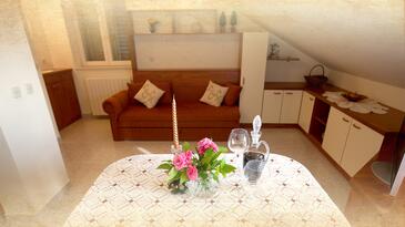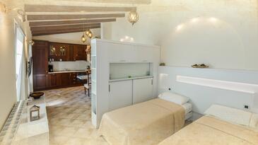 Ferienwohnung bietet Platz für 2 Gäste. Die Betten sind in Schlafzimmern, die es 1 gibt, innerhalb einer Gesamtfläche von 38m2, angeordnet. Die Gäste haben einen eigenen Balkon zur Verfügung, auf der sie in warmen Sommernächten genießen können. Das Apartment bietet Meerblick.