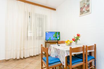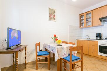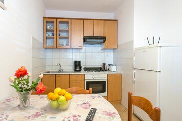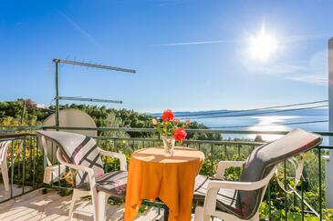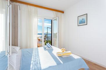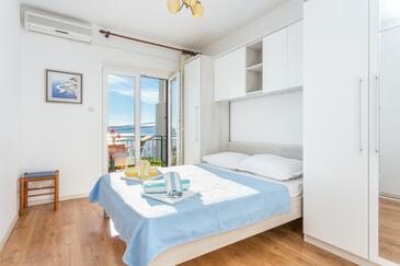 Ferienwohnung bietet Platz für 4 Gäste. Die Betten sind in Schlafzimmern, die es 2 gibt, innerhalb einer Gesamtfläche von 48m2, angeordnet. Die Gäste haben einen eigenen Balkon zur Verfügung, auf der sie in warmen Sommernächten genießen können. Das Apartment bietet Meerblick. Es ist erlaubt, Speisen auf dem Gemeinschafts-Grill vorzubereiten.
