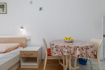 Ferienwohnung bietet Platz für 6 Gäste. Die Betten sind in Schlafzimmern, die es 2 gibt, innerhalb einer Gesamtfläche von 43m2, angeordnet. Die Gäste haben einen eigenen Balkon zur Verfügung, auf der sie in warmen Sommernächten genießen können. Das Apartment bietet Meerblick. Es ist erlaubt, Speisen auf dem Gemeinschafts-Grill vorzubereiten.